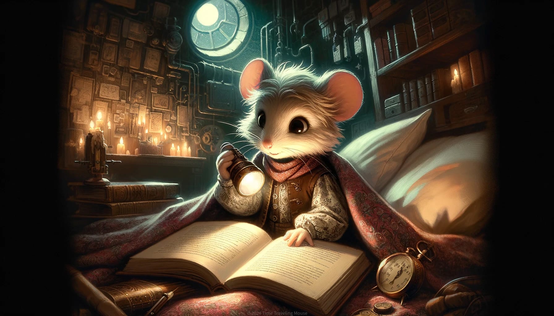 So while her brothers used their free time to play mouse games, Sophie would go off by herself to read. And when the day was done, Sophie would take a little flashlight to bed with her and continue reading under the covers. She’d keep reading far into the wee hours of the night after everyone else in the lab had fallen asleep. That’s simply what mice who have just learned to read do.